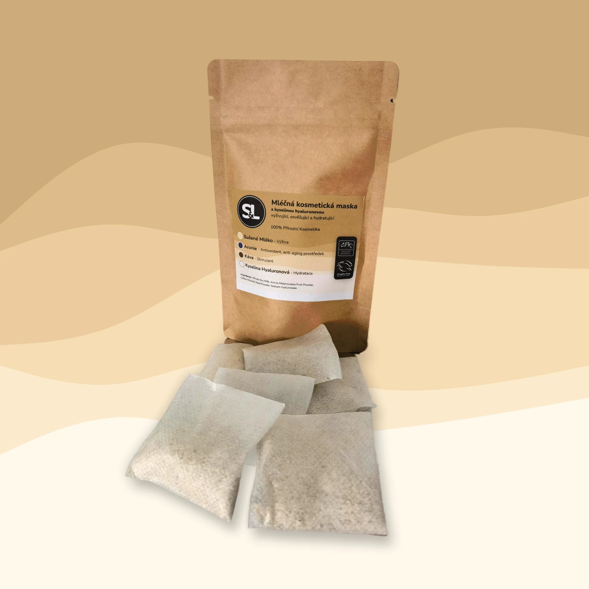 Po namočení v teplé vodě se prášek promění v jemnou mléčnou masku, která hloubkově hydratuje díky kyselině hyaluronové, zatímco arónie bohatá na antioxidanty revitalizuje a chrání pleť před volnými radikály.